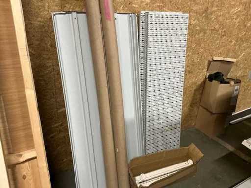 partij diverse leggers met afmeting 133 x 60 cm compleet met partij diverse losse onderdel voor rek