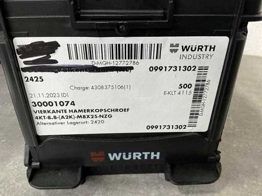 Würth 17.79 kg Vierkante hamerkopschroef M8 x 25 in stapelbare bak
