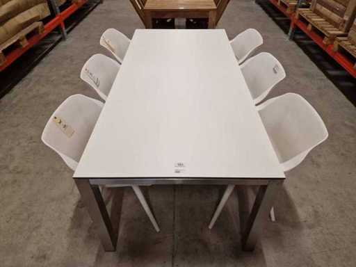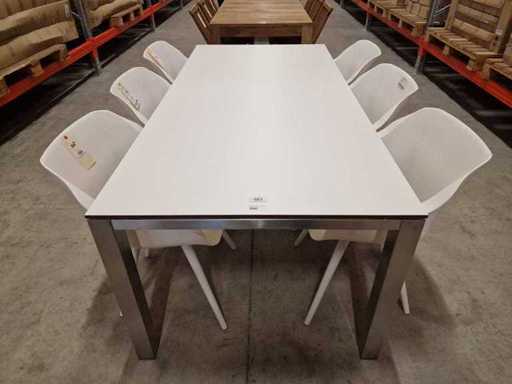 Xclusiv Inox Tuintafel Scorpion 210 x 100cm + HPL Blad Wit 1cm Dik - Outdoor Kwaliteit Trespa