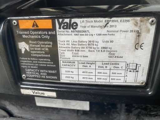 Yale - 2013 - ERP 35 VL - Vorkheftruck Triplex - Freelift - Sideshift