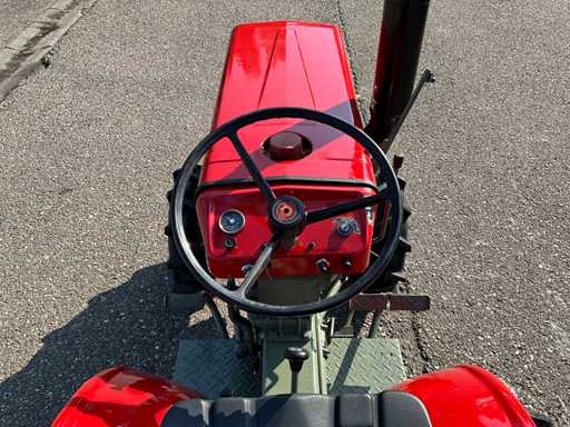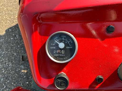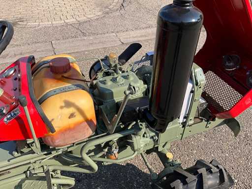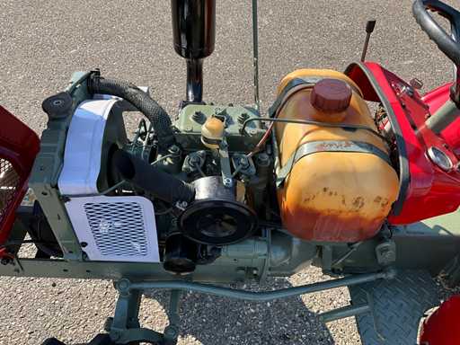 4 versnellingen hoog/laag, 3 standen PTO, 3-punt hefinrichting, 2-cilinder diesel motor