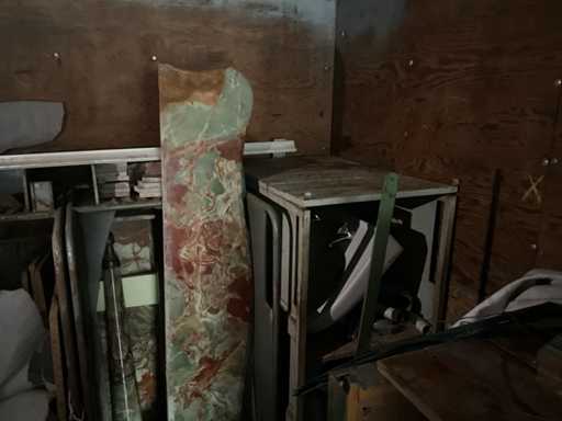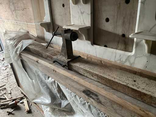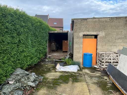 Met inhoud waaronder 8x transportbok, 12 transportkarren, 2x steenbewerkingmachine waaronder draaibank, divers natuursteen, motoren, plaatschaar enig natuursteen