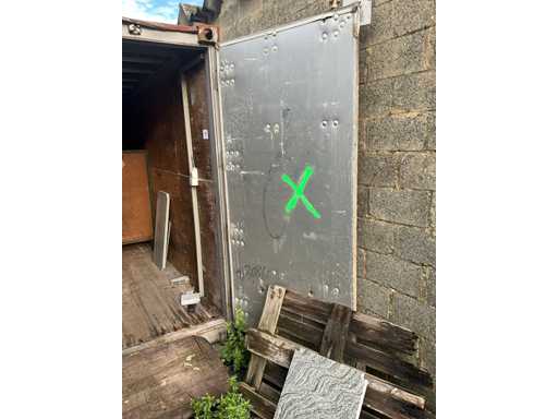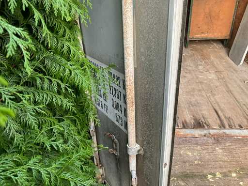 Klant is verantwoordelijk voor verplaatsen van container en transport, container bevindt zich tussen gebouw en haag