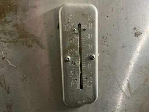 Voorzien van: mangat, temperatuur indicatie, onder, en boven aansluiting, horizontale verdikte strepen, glanzende en spiegelende oppervlak van de buitenkant van de tank, koeling buiten werking, beschikbaar vanaf juni,